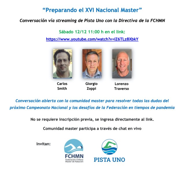 La FCHMN tiene el agrado de invitar a toda la comunidad master del país al XX Cto. Nacional de Natación Master a realizarse del 07 al 10 de enero/2026 en la ciudad de Valparaiso. -